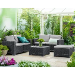 Keter California 5 Seater Double Sofa Outdoor Garden Furniture Lounge Set – Graphite With Grey Cushions